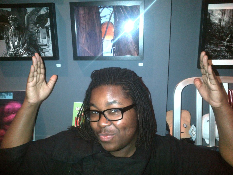 To the left is a picture my friend took of me at the LOST Show at Grumpy Bert in February. That particular print of “Small Golden Blessing” is now up at Black Women’s Blueprint in Brooklyn. If you don’t know about Black Women’s Blueprint, they’re doing some tremendous work. Visit their website and if you’re in NYC, visit them in person.